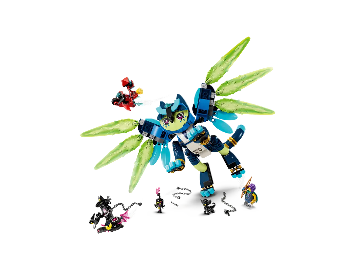 LEGO® DREAMZzz™ Zoey und die Katzeneule Zian (71476) ist ein Bauset, das Kinder besonders fantasievoll spielen lässt. Das Spielset zur spannenden TV-Serie versetzt Kinder ab 9 Jahren in die faszinierende Traumwelt, in der sie der Heldin Zoey helfen, Zian vor dem bösen Nachtjäger zu retten. Die Bauanleitung in Form einer Bildergeschichte lässt dein Kind 2 Varianten des Fantasietiers bauen, damit es sich in ein Abenteuer in der Traumwelt stürzen und doppelten Spielspaß erleben kann. Die Fantasiedeines Kindes wird geweckt, wenn es Zian entweder in eine Katzeneule mit Flügeln verwandelt, damit er den Albträumen davonfliegen kann, oder in einen Katzenpfau mit prächtigen Schwanzfedern, der die Bösewichte verscheucht. 3 Minifiguren hauchen demActionabenteuer Leben ein: Zoey, Cooper und der Nachtjäger mit seinen Handlangern Sneak und Snivel. Cooles Zubehör wie Zoeys schießender Bogen und Coopers fliegendes Motorrad inspiriert Kinder dazu, ihre Lieblingsszenen aus der Actionserie nachzustelle n oder fantasievolle eigene Abenteuer darzustellen.