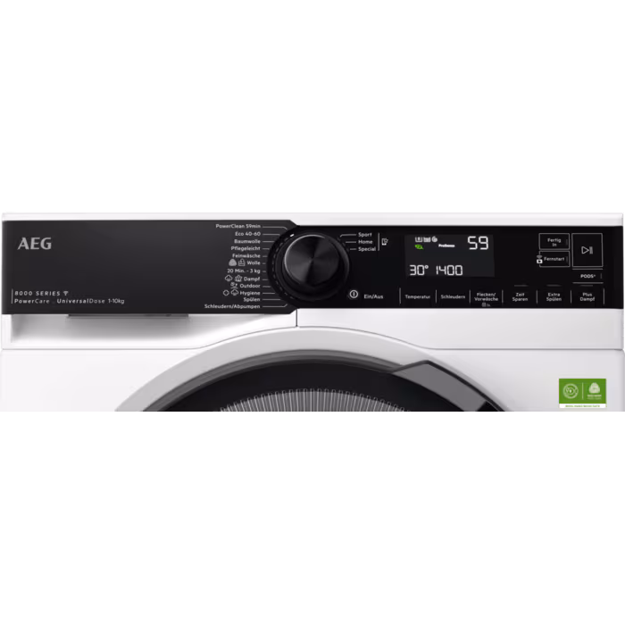 Die 8000 PowerCare Waschmaschinen verwenden die einzigartige PowerCare-Technologie, um Waschmittel und Weichspüler effektiv mit Wasser vorzumischen und gleichmäßig auf deiner Kleidung zu verteilen. Aktivierende Waschkraft bereits bei 30 °C für überragende Waschergebnisse in weniger als einer Stunde.