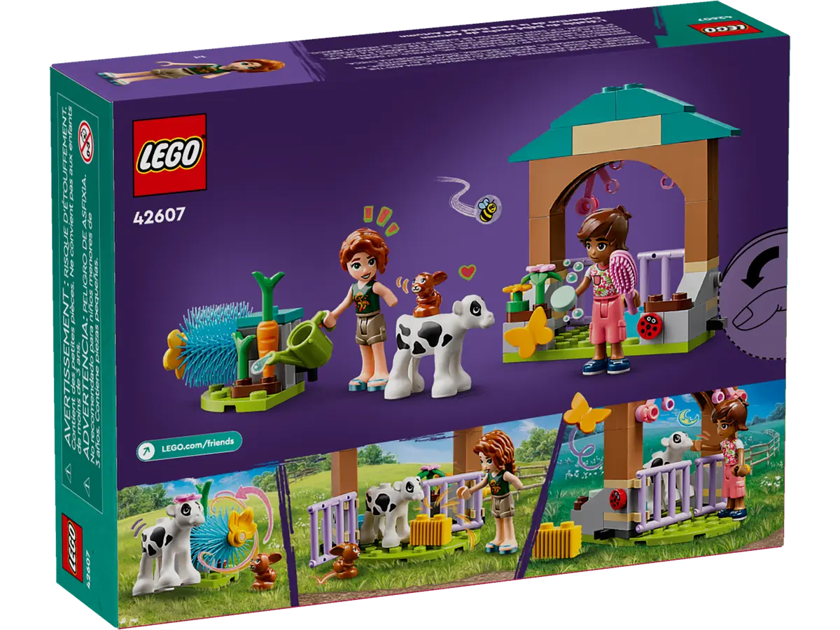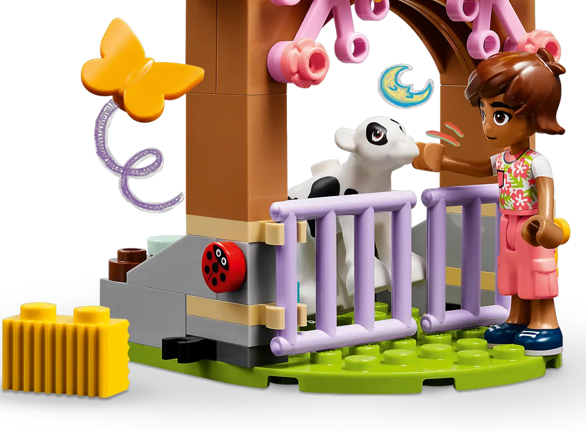 LEGO® Friends Autumns Kälbchenstall (42607) bietet Mädchen und Jungen ab 5 Jahren ein tolles kreatives Spielerlebnis. Dein Kind kann sich auf viele Rollenspiele und Abenteuer freuen und zum Beispiel das Kälbchen waschen und bürsten oder eine Karotte fürs Häschen ernten. Und mit den beiden Spielfiguren Autumn und Leo kann dein Kind tolle Freundschaftsgeschichten darstellen. Der Stall hat aufklappbare Türen, und neben dem Stall befindet sich eine große rotierende Bürste.Eine Bürste, ein Eimer, Seife, eine Gießkanne, Heu und ein Futtertrog sind als Tierpflegezubehör enthalten. Und mit den Blumen kann man die Figuren schmücken. Dein Kind kann außerdem kleine Insekten beobachten, unter anderem eine Biene, einen Schmetterling und Marienkäfer. Dieses Set ist eine tolle Geschenkidee für Mädchen und Jungen ab 5 Jahren.Zu diesem Farmtier-Spielset ist auch die LEGO Builder App verfügbar, die ein leichtes und intuitives Bauabenteuer bietet. Die App lässt dein Kind 3D-Ansichten der Modelle vergrößern und drehen, Sets speichern und den Baufortschritt verfolgen.
