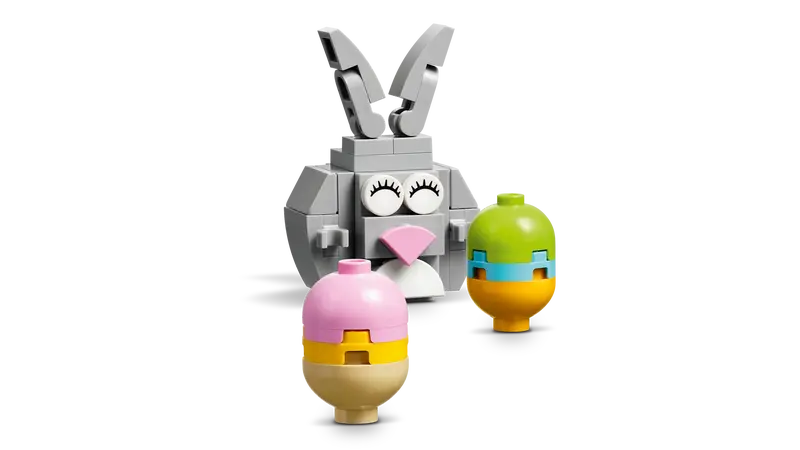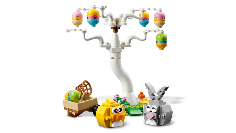 Dieses Bauset ist ein tolles Ostergeschenk für Erwachsene, Kinder und Tierfreunde. Man kann das Modell wunderbar zusammen mit Freunden oder der Familie bauen. Baue den Baum, den Wagen, den LEGO Spielzeugvogel und den Hasen. Baue dann die bunten Eier und häng sie an die Äste des Baums, damit die Tiere sie finden können. Hilf dem Küken und dem Osterhasen, die Eier mit dem Obstpflücker einzusammeln und in den Wagen zu legen.